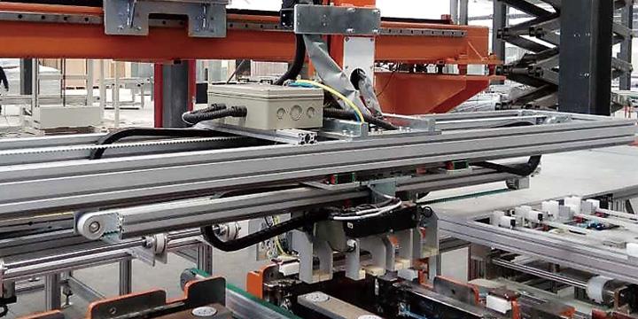 移載機械手采用多軸伺服電機,全方位機械臂,同時抓取4塊邊框自動翻轉移動到位。